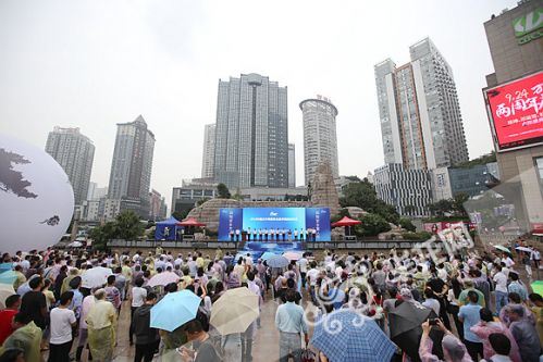 今日上午,虽然山城降雨降温,但现场观众热情不减,早早来到活动现场。